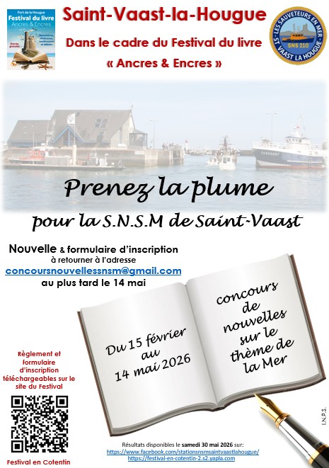 Un concours de nouvelles est organisé en vue d’éditer un recueil qui sera vendu au profit de la SNSM. Le thème : la mer. Le concours est ouvert à tous. D’une longueur maximale de 10 000 signes ou 1 500 mots, soit environ trois pages, au format Word ou OpenOffice, chaque nouvelle devra être accompagnée de la fiche d'inscription de l'auteur et être envoyée par mail à l’adresse concoursdenouvellesSNSM@gmail.com au plus tard pour le 14 mai 2026.