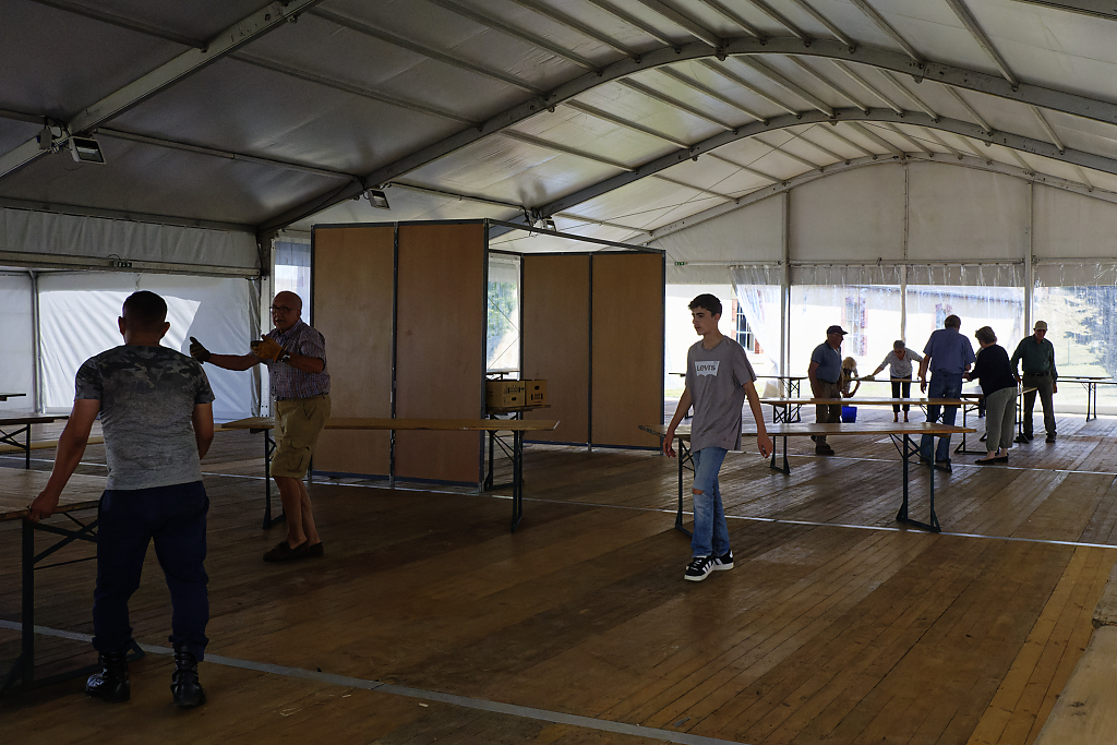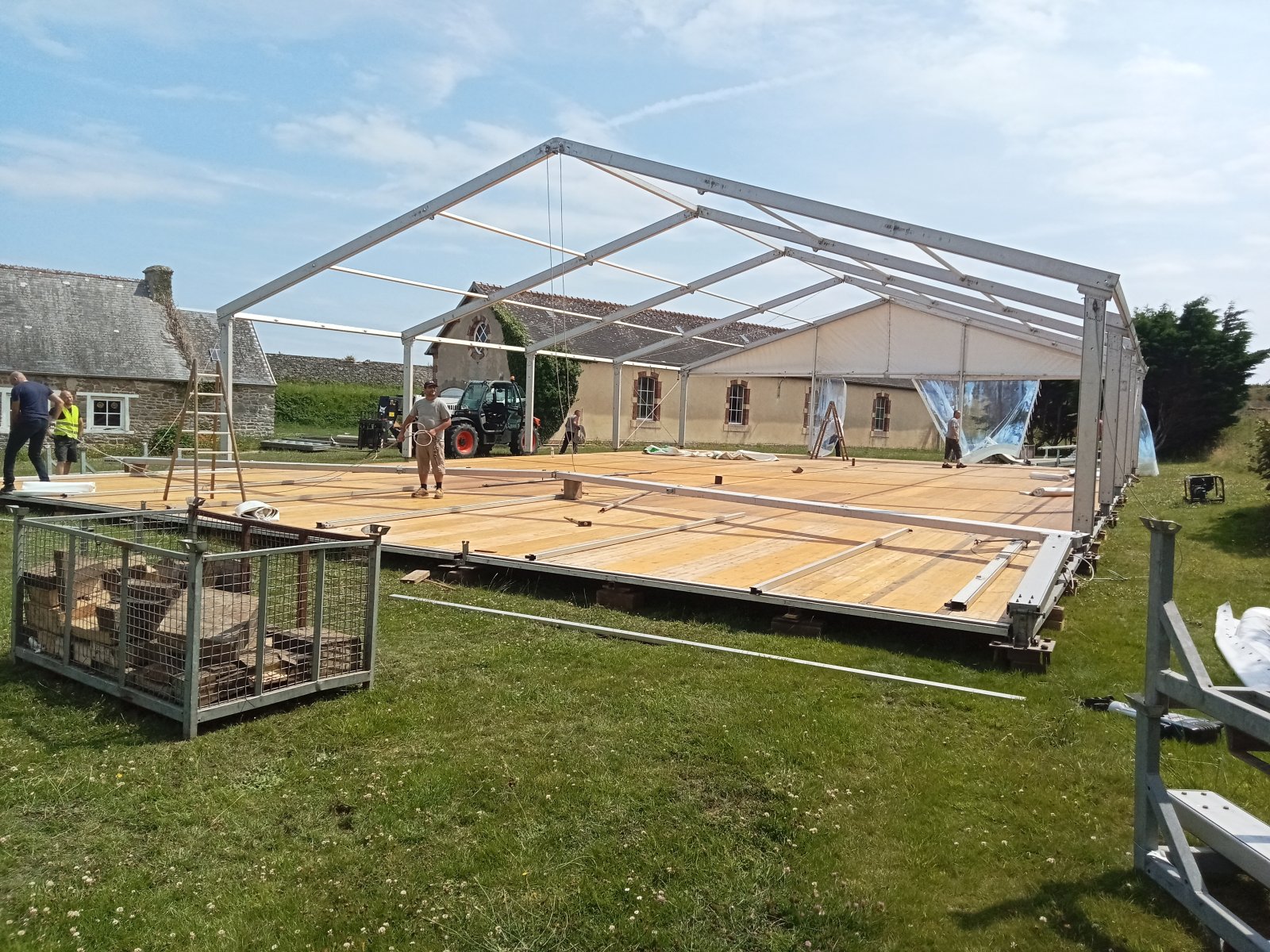Mise en place du chapiteau au Fort de la Hougue